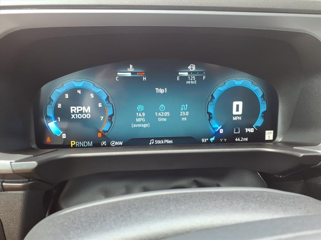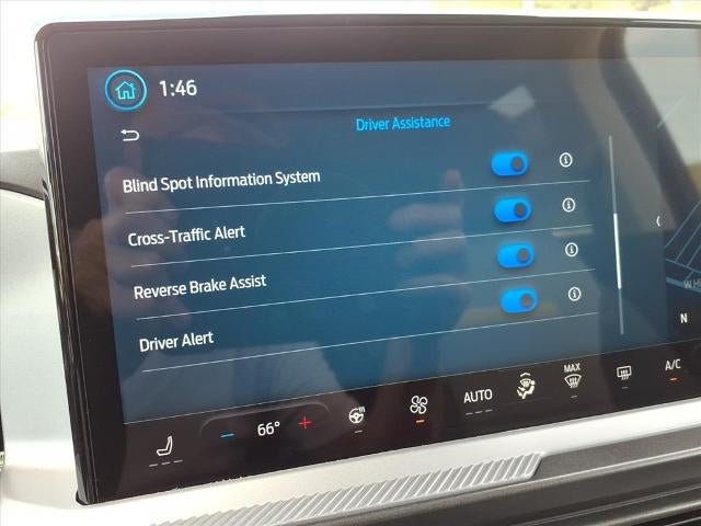 4-Wheel Disc Brakes, 6 Speakers, ABS brakes, Air Conditioning, Alloy wheels, AM/FM radio: SiriusXM, AM/FM Stereo, Auto High-beam Headlights, Auto-dimming Rear-View mirror, Automatic temperature control, Brake assist, Compass, Delay-off headlights, Driver door bin, Driver vanity mirror, Dual front impact airbags, Dual front side impact airbags, Electronic Stability Control, Emergency communication system: SYNC 4 911 Assist, Four wheel independent suspension, Front anti-roll bar, Front Bucket Seats, Front Center Armrest, Front fog lights, Front reading lights, Fully automatic headlights, Garage door transmitter, Heated door mirrors, Heated front seats, Heated steering wheel, Illuminated entry, Knee airbag, Leather Trimmed Front Bucket Seats, Low tire pressure warning, Memory seat, Occupant sensing airbag, Outside temperature display, Overhead airbag, Overhead console, Panic alarm, Passenger door bin, Passenger vanity mirror, Power door mirrors, Power driver seat, Power passenger seat, Power steering, Power windows, Radio data system, Rear anti-roll bar, Rear reading lights, Rear seat center armrest, Rear window defroster, Rear window wiper, Remote keyless entry, Security system, SiriusXM, Speed control, Speed-sensing steering, Speed-Sensitive Wipers, Split folding rear seat, Steering wheel mounted audio controls, SYNC 4 w/Enhanced Voice Recognition, Tachometer, Telescoping steering wheel, Tilt steering wheel, Traction control, Trip computer, Variably intermittent wipers, Wheels: 17 Matte Black-Painted Aluminum.