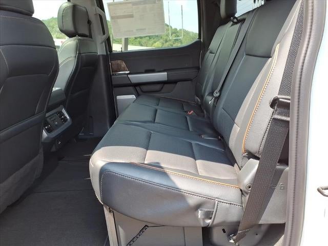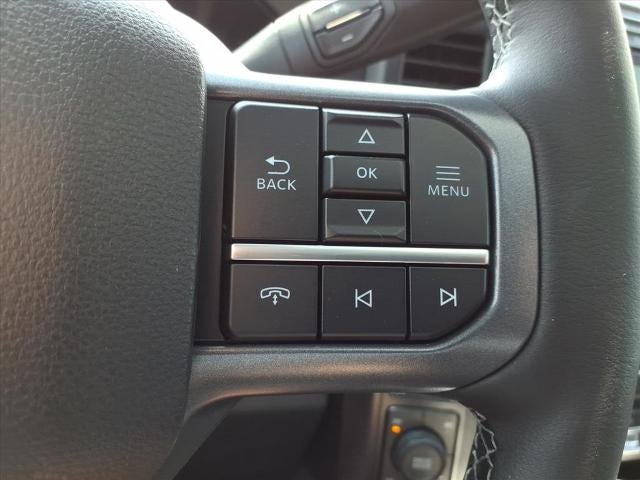 4-Way Adjustable Headrests, 4-Wheel Disc Brakes, 6 Ebony Black Angular Running Boards, 8 Speakers, ABS brakes, Adjustable pedals, Air Conditioning, Alloy wheels, AM/FM radio: SiriusXM with 360L, Auto High-beam Headlights, Auto-dimming Rear-View mirror, Automatic High Beam, Automatic temperature control, Black Appearance Package, Black Painted Front Grille Surround, Brake assist, Bumpers: chrome, Compass, Delay-off headlights, Driver door bin, Driver vanity mirror, Dual AGM 68 AH Battery, Dual front impact airbags, Dual front side impact airbags, Ebony Black Painted Mirror Caps, Electronic Stability Control, Emergency communication system: SYNC 4 911 Assist, Engine Block Heater, Flow-Through Console, Front ActiveX Trimmed 40/Console/40 Seats, Front anti-roll bar, Front Bucket Seats, Front Center Armrest, Front dual zone A/C, Front fog lights, Front License Plate Bracket, Front reading lights, Fully automatic headlights, FX4 Off-Road Package, Garage door transmitter, Head-Up Display, Heated door mirrors, Heated front seats, Heated rear seats, Heated steering wheel, High Capacity 11.6 Axle Upgrade Package, Hill Descent Control, Illuminated entry, Lane-Keeping System, Lariat Ultimate Package, Low tire pressure warning, Memory seat, Navigation System, Off-Road Specifically Tuned Shock Absorbers, Order Code 608A, Outside temperature display, Overhead airbag, Overhead console, Panic alarm, Passenger door bin, Passenger vanity mirror, Pedal memory, Post-Collision Braking, Power door mirrors, Power driver seat, Power passenger seat, Power steering, Power windows, Power-Deployable Running Boards, Pre-Collision Assist, Privacy Glass, Pro Trailer Backup Assist, Pro Trailer Hitch Assist, Radio: B&O Unleashed Sound System by Bang & Olufsen, Rain sensing wipers, Rear Parking Sensors, Rear reading lights, Rear seat center armrest, Rear step bumper, Rear window defroster, Remote keyless entry, Security system, Speed control, Split folding rear seat, Steering wheel mounted audio controls, Tachometer, Telescoping steering wheel, Tilt steering wheel, Traction control, Trip computer, Turn signal indicator mirrors, Twin Panel Power Moonroof, Unique FX4 Off-Road Box Decal, Upfitter Switches (6), Variably intermittent wipers, Ventilated front seats.