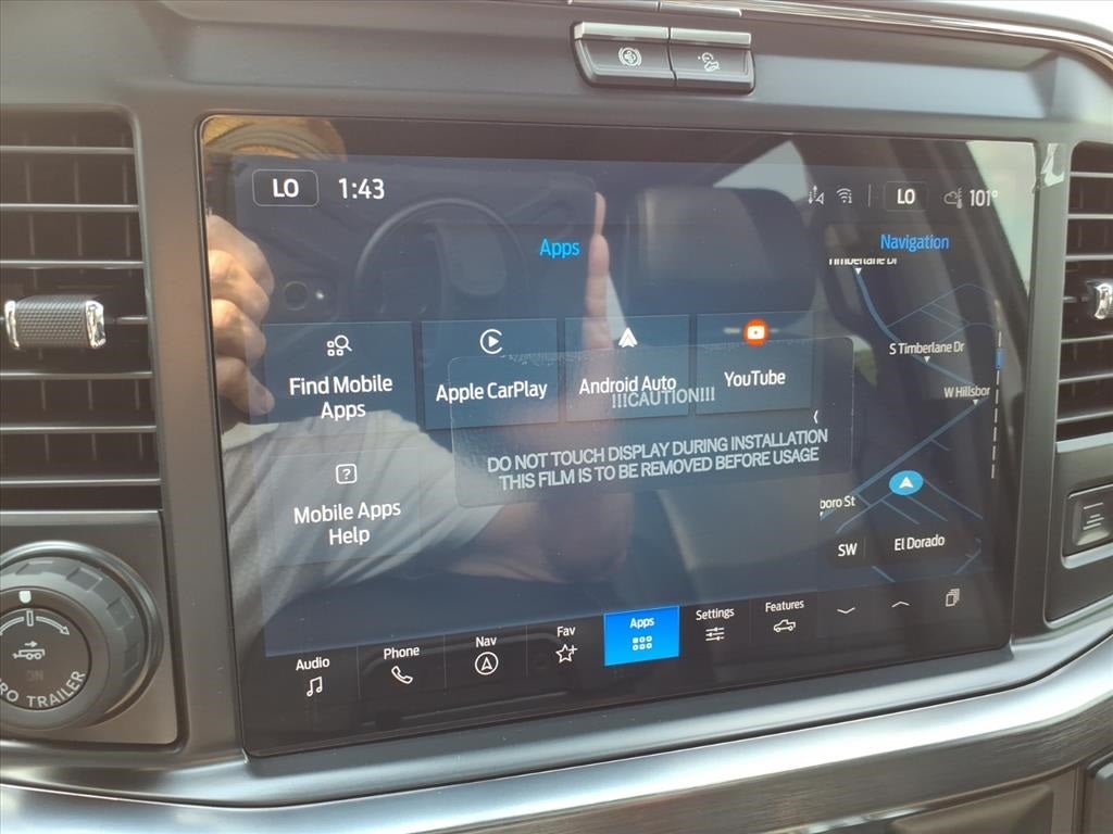 - SYNC 4 w/Enhanced Voice Recognition -inc: 12" LCD capacitive touchscreen w/swipe capability, information on demand panel, wireless phone connection, cloud connected, AppLink w/app catalog, 911 Assist, Apple CarPlay and Android Auto compatibility, digital owner's manual, conversational voice command recognition and connected navigation w/complimentary 1-year trial for eligible vehicles that begins on the new vehicle warranty start date, Customers must unlock the navigation service trial by activating the eligible vehicle w/a FordPass member account, If not subscribed by the end of the complimentary period, the connected navigation service will revert to a moving-map and active routing will no longer be available, Connected service and features depend on compatible AT&T network availability, Evolving technology/cellular networks/vehicle capability may limit functionality and prevent operation of connected features, FordPass app, compatible w/select smartphone platforms, is available via a download, Message and data rates may apply