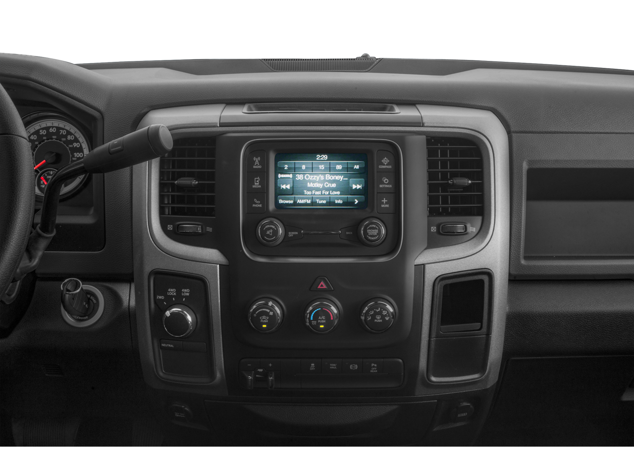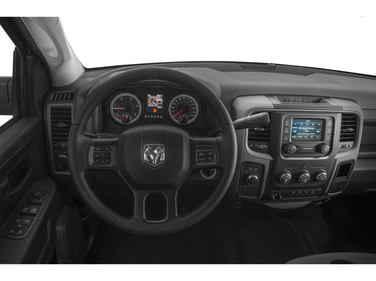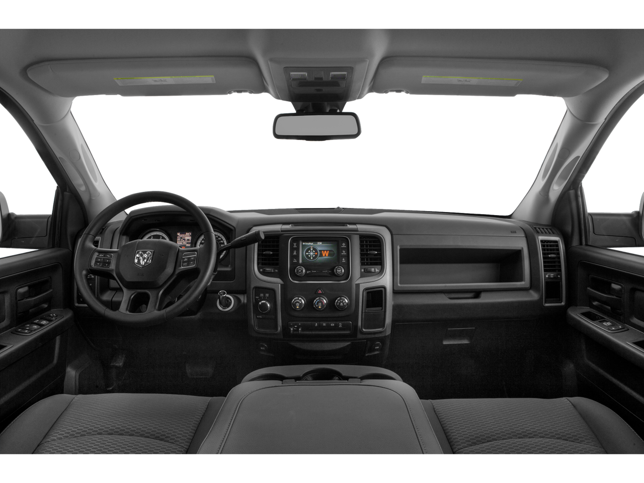 1-Yr SiriusXM Radio Service, 17 x 7.5 Steel Styled Wheels, 180 Amp Alternator, 3.42 Axle Ratio, 3.73 Axle Ratio, 4-Wheel Disc Brakes, 40/20/40 Split Bench Seat, 5.0 Touchscreen Display, 6 Speakers, ABS brakes, Air Conditioning, AM/FM radio, Anti-Spin Differential Rear Axle, Auto-dimming Rear-View mirror, Black Exterior Mirrors, Black Wheel Flares, Brake assist, Bright Front Bumper, Bright Grille, Bright Rear Bumper, Carpet Floor Covering, Center Hub, Charge Only Remote USB Port, Chrome Appearance Group, Clearance Lamps, Delay-off headlights, Driver door bin, Dual front impact airbags, Dual front side impact airbags, Electronic Stability Control, Electronically Controlled Throttle, Exterior Mirrors Courtesy Lamps, Exterior Mirrors w/Heating Element, Exterior Mirrors w/Supplemental Signals, For More Info, Call 800-643-2112, Front & Rear Floor Mats, Front anti-roll bar, Front Center Armrest, Front Performance Tuned Shock Absorbers, Fully automatic headlights, GPS Antenna Input, Heated door mirrors, Heavy Duty Vinyl 40/20/40 Split Bench Seat, Hemi Badge, Integrated Voice Command w/Bluetooth®, Locking Tailgate, Low tire pressure warning, Manual Adjust Seats, Media Hub (USB, AUX), Next Generation Engine Controller, Occupant sensing airbag, Off Road Package, Offroad Decal, Overhead airbag, Overhead Console, ParkView Rear Back-Up Camera, Passenger door bin, Popular Equipment Group, Power Black Trailer Tow Mirrors, Power door mirrors, Power steering, Power windows, Quick Order Package 2FA Tradesman, Radio data system, Radio: 3.0, Radio: Uconnect 3 w/5 Display, Rear Folding Seat, Rear Performance Tuned Shock Absorbers, Rear step bumper, Rear View Day/Night Mirror, Remote Keyless Entry, SiriusXM Satellite Radio, Speed control, Tachometer, Temperature & Compass Gauge, Tilt steering wheel, Tip Start, Tow Hooks, Traction control, Trailer Brake Control, Trailer Tow Mirrors, Variably intermittent wipers, Vendor Painted Cargo Box Tracking, Voltmeter, Wheels: 18 x 8.0 Steel Chrome Clad.