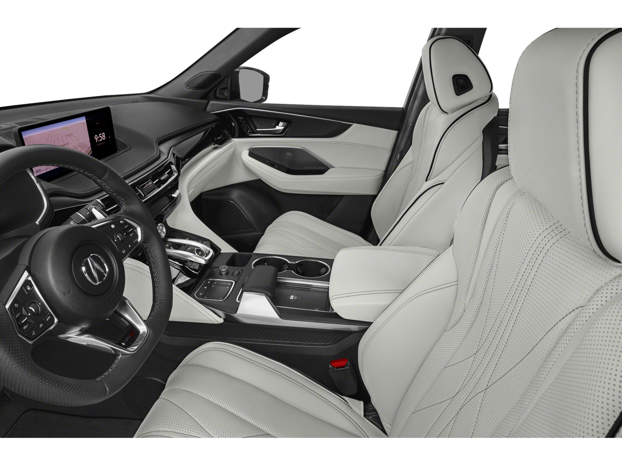 3rd row seats: split-bench, 4-Wheel Disc Brakes, 4.17 Axle Ratio, A/V remote: CabinControl, ABS brakes, Adaptive suspension, Air Conditioning, Alloy wheels, AM/FM radio: SiriusXM, Anti-whiplash front head restraints, Apple CarPlay/Android Auto, Audio memory, Auto High-beam Headlights, Auto tilt-away steering wheel, Auto-dimming Rear-View mirror, Auto-leveling suspension, Automatic temperature control, Brake assist, Bumpers: body-color, Compass, Delay-off headlights, Driver door bin, Driver vanity mirror, Dual front impact airbags, Dual front side impact airbags, Electronic Stability Control, Emergency communication system: AcuraLink, Exterior Parking Camera Rear, Four wheel independent suspension, Front anti-roll bar, Front Bucket Seats, Front Center Armrest, Front dual zone A/C, Front fog lights, Front reading lights, Fully automatic headlights, Garage door transmitter: HomeLink, Heads-Up Display, Heated & Ventilated Front Sport Seats, Heated door mirrors, Heated front seats, Heated rear seats, Heated steering wheel, HVAC memory, Illuminated entry, Knee airbag, Lane departure: Lane Keeping Assist System (LKAS) active, Leather steering wheel, Low tire pressure warning, Memory seat, Navigation system: Acura Navigation System with 3D View, Occupant sensing airbag, Outside temperature display, Overhead airbag, Overhead console, Panic alarm, Passenger door bin, Passenger vanity mirror, Perforated Premium Milano Leather Trimmed Seats, Power door mirrors, Power driver seat, Power Liftgate, Power moonroof, Power passenger seat, Power steering, Power windows, Premium audio system: ELS Studio 3D Signature Edition, Radio data system, Radio: ELS Studio 3D Signature Ed Prem Aud System, Rain sensing wipers, Rear air conditioning, Rear anti-roll bar, Rear reading lights, Rear seat center armrest, Rear window defroster, Rear window wiper, Remote keyless entry, Security system, Speed control, Speed-sensing steering, Speed-Sensitive Wipers, Split folding rear seat, Spoiler, Sport steering wheel, Steering wheel memory, Steering wheel mounted audio controls, Tachometer, Telescoping steering wheel, Tilt steering wheel, Traction control, Trip computer, Turn signal indicator mirrors, Variably intermittent wipers, Ventilated front seats, Wheels: 21 x 9.5J Aluminum Alloy.