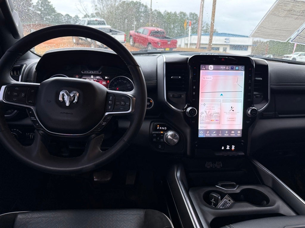 10 Speakers, 3 Rear Seat Head Restraints, 3.55 Rear Axle Ratio, 4 Way Front Headrests, 4-Wheel Disc Brakes, 4G LTE Wi-Fi Hot Spot, ABS brakes, Air Conditioning, Alloy wheels, AM/FM radio: SiriusXM with 360L, Apple CarPlay, Apple CarPlay/Android Auto, Audio memory, Auto High-beam Headlights, Auto Power-Folding Mirrors, Auto-dimming door mirrors, Auto-Dimming Exterior Driver Mirror, Auto-dimming Rear-View mirror, Automatic temperature control, Brake assist, Bumpers: chrome, Chrome Exterior Mirrors, Compass, Connected Travel & Traffic Services, Connectivity - US/Canada, Convex Wide-Angle Exterior Mirror Insert, Delay-off headlights, Driver door bin, Driver Seat Memory, Driver vanity mirror, Dual front impact airbags, Dual front side impact airbags, Electronic Stability Control, Exterior Mirrors Courtesy Lamps, Exterior Mirrors w/Heating Element, Exterior Mirrors w/Memory, Exterior Mirrors w/Supplemental Signals, Front anti-roll bar, Front Center Armrest w/Storage, Front dual zone A/C, Front fog lights, Front License Plate Bracket, Front reading lights, Front Seat Back Map Pockets, Front wheel independent suspension, Fully automatic headlights, Garage door transmitter, Google Android Auto, GPS Antenna Input, GPS Navigation, HD Radio, Heated door mirrors, Heated Front Seats, Heated front seats, Heated rear seats, Heated Steering Wheel, Heated steering wheel, Illuminated entry, Integrated Voice Command w/Bluetooth®, Laramie Level 1 Equipment Group, Leather steering wheel, Leather Trim 40/20/40 Bench Seat, Low tire pressure warning, Manufacturer's Statement of Origin, Memory seat, Navigation System, Occupant sensing airbag, Outside temperature display, Overhead airbag, Overhead console, Panic alarm, ParkView Rear Back-Up Camera, Passenger door bin, Passenger vanity mirror, Power 2-Way Driver Lumbar Adjust, Power 2-Way Passenger Lumbar Adjust, Power Adjust 8-Way Front Passenger Seat, Power door mirrors, Power driver seat, Power passenger seat, Power steering, Power windows, Quick Order Package 21H Laramie, Radio data system, Radio: Uconnect 5 Nav w/12.0 Display, Rain Sensitive Windshield Wipers, RAM Grille Badge - Chrome, Rear anti-roll bar, Rear reading lights, Rear seat center armrest, Rear step bumper, Remote keyless entry, Remote Tailgate Release, Security system, SiriusXM w/360L, Speed control, Split folding rear seat, Steering wheel mounted audio controls, Tachometer, Telescoping steering wheel, Tilt steering wheel, Traction control, Trip computer, Turn signal indicator mirrors, USB Host Flip, Variably intermittent wipers, Ventilated Front Seats, Ventilated front seats, Voltmeter, Wheels: 20 x 9 Premium Paint/Polish.